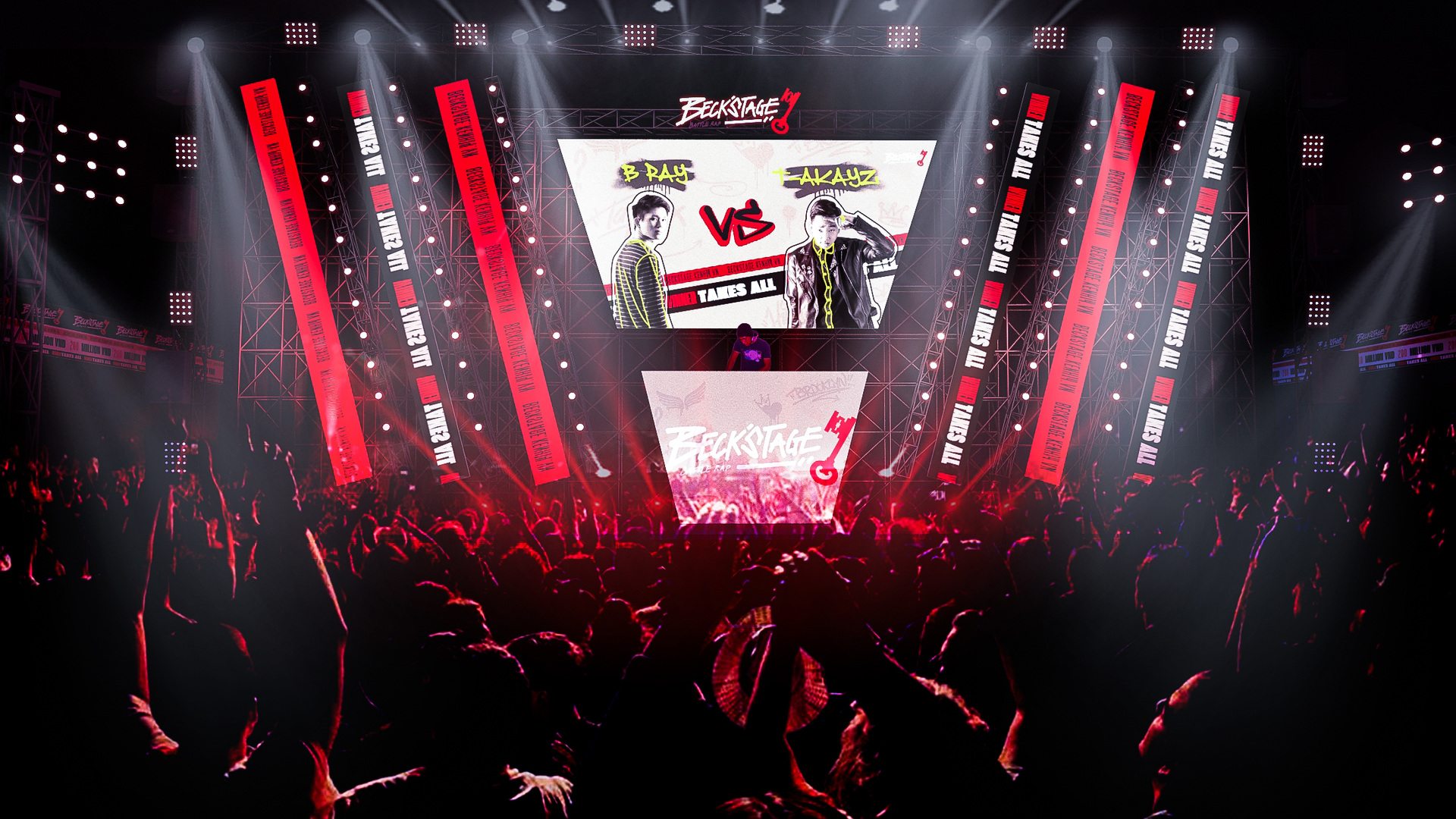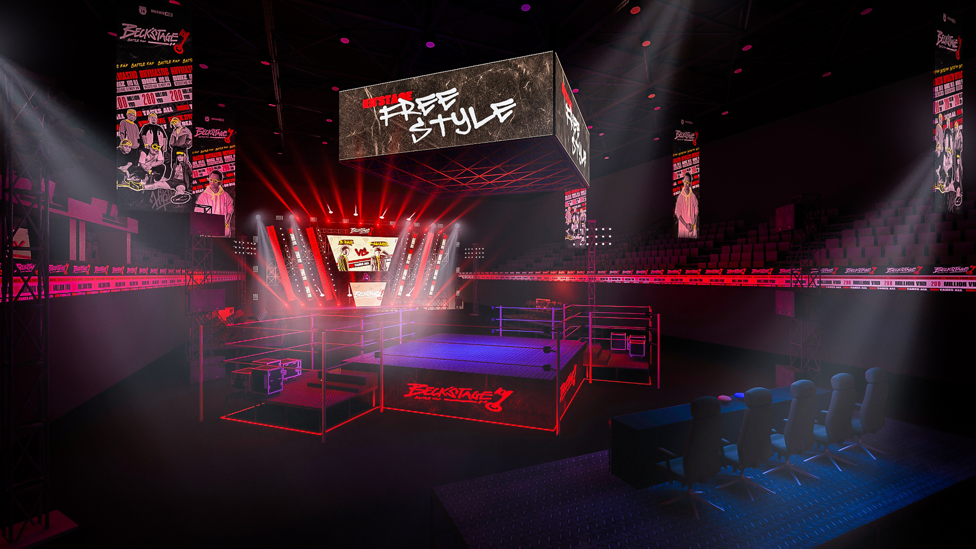 Project:E is honored to collaborate with Beck’s Ice Battle Rap, delivering a cutting-edge 3D design for an electrifying hip-hop battleground. By blending dynamic lighting, creative 3D effects, and an underground-inspired stage, we have crafted the perfect space for rappers to showcase their skills and set the stage on fire.