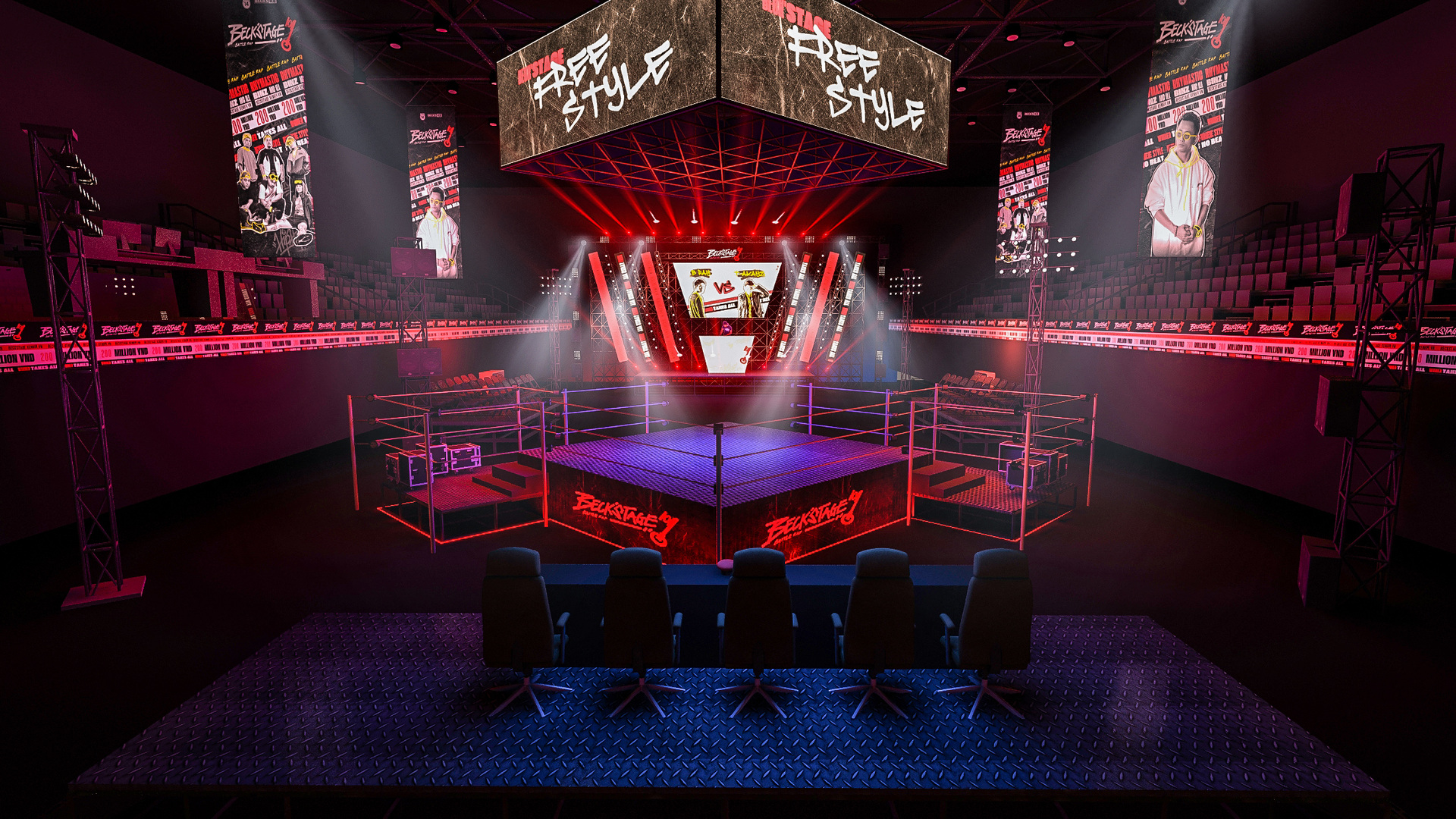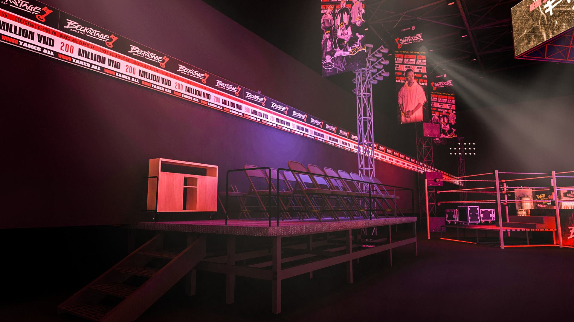 Project:E vinh dự đồng hành cùng Beck’s Ice Battle Rap, mang đến thiết kế 3D độc đáo cho một sân chơi năng động, chất lừ dành riêng cho cộng đồng yêu hip-hop. Với sự kết hợp ánh sáng, hiệu ứng 3D sáng tạo và không gian sân khấu đậm chất underground, chúng tôi đã tạo ra một môi trường hoàn hảo để các rapper thể hiện cá tính và bùng nổ trên sân khấu.
