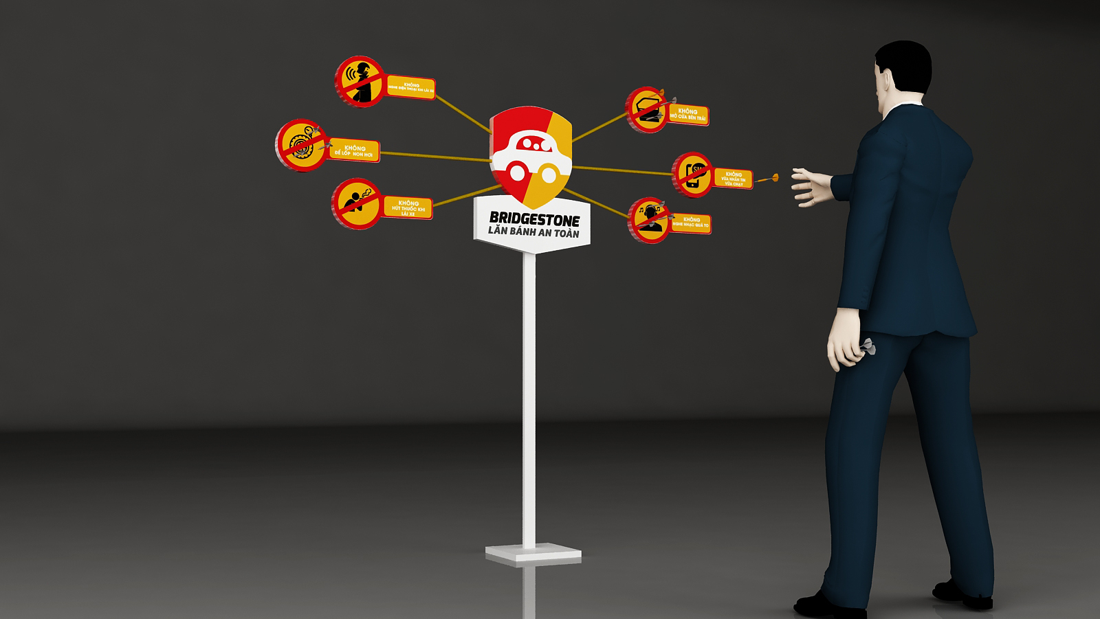 Project:E hân hạnh đồng hành cùng BRIDGESTONE trong sự kiện khai trương, mang đến thiết kế 3D chuyên nghiệp, tái hiện không gian hoành tráng và ấn tượng. Với sự kết hợp hài hòa giữa màu sắc thương hiệu, hiệu ứng ánh sáng và bố cục không gian tối ưu, sự kiện trở thành một cột mốc đáng nhớ.